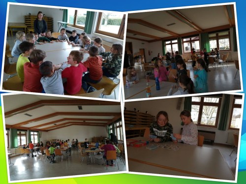 Das Bibliotheksteam präsentierte ca. 35 Kindern Spiele, die begeistert aufgenommen wurden. Es wurden neue Spiele ausprobiert und bereits bekannte mit viel Feuereifer immer wieder gespielt.