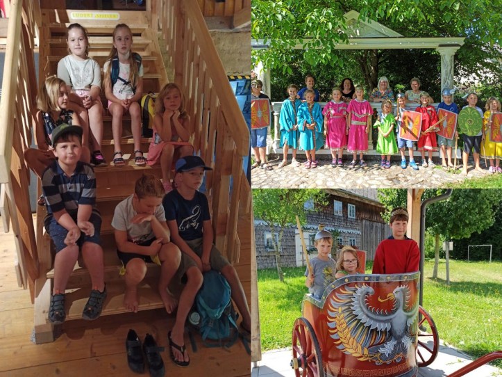 Das Team der Bibliothek Burgkirchen hat heute mit Kindern der Volksschule die römische Geschichte einmal ganz anders erlebt. Wir sind in die Welt der Römer im Ochzethaus in Altheim eingetaucht.