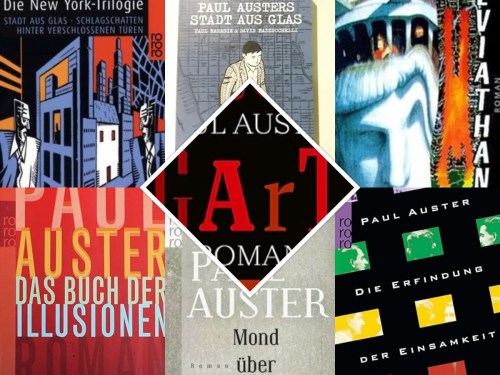 Austers Figuren, oft von seiner eigenen Lebensgeschichte beeinflusst, sind exzentrische Charaktere. Sie verlieren sich auf der Suche nach sich selbst in dunkle Abgründe. Das Unvorhersehbare, zufällige Ereignisse und fantastische Wendungen prägen ihr Dasein und geben Anlass zu philosophischen Betrachtungen über Kunst und Kultur, Identität, Leben und Tod.