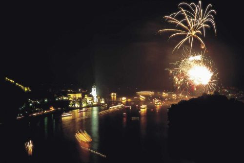 Besonders imposant ist etwa der Feuerzauber in Spitz, wo die Sehenswürdigkeiten des Ortes und der Tausendmeierberg mit tausenden Fackeln beleuchtet werden. Das Datum ist allerdings von Jahr zu Jahr unterschiedlich.