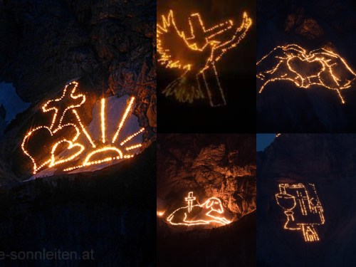 Sehenswert sind die Bergfeuer in Tirol. So wird etwa die Zugspitzarena mit rund 10.000 Feuerstellen erleuchtet, die von Säcken befeuert werden, die mit Sägemehl und Rapsöl gefüllt sind. Wobei es nicht nur um das Licht an sich geht, sondern auch um Feuerskulpturen, die damit in die Berge gezeichnet werden – von leuchtenden Kreuzen bis zu strahlenden Herzen. Ein Bild, das die Unesco 2010 zum immateriellen Kulturerbe Österreichs erklärt hat.